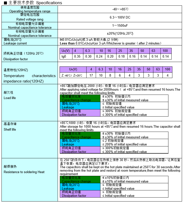 Related Voltage: 6.3V, 10V, 16V, 25V, 35V, 50V, 63V, 100V.